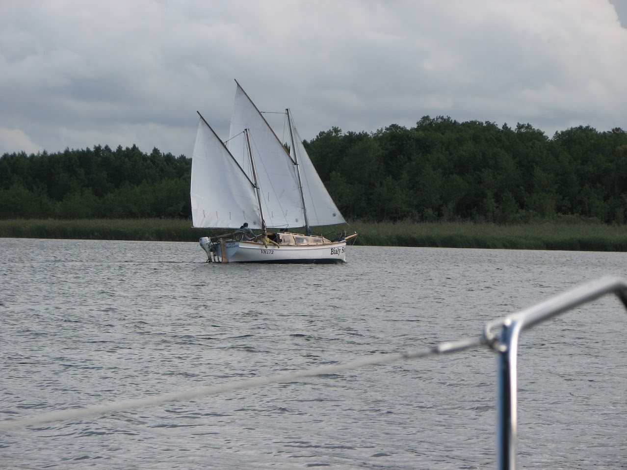 nad Śniardwami. W wiesce znajduje się również Stacja Badawcza PAN, sanitariaty przy porcie jachtowym i smażalnia ryb. Zachowały się tutaj tradycyjne, drewniane chaty mazurskie z pomalowanymi na niebesko drzwiami i okiennicami. Głowne atrakcje do zwiedzania to wolna hodowla konika polskiego oraz muzeum przyrodnicze działające przy Stacji Badawczej PAN. Warto zebrać większą grupę osób i zwiedzić muzeum przyrodnicze z przewodnikiem. Muzeum szczyci się jedyną w Europie fermą bobrów. Wierzba i Popielno to oczywiście przepiękne krajobrazy jezior Bełdany i Śniardwy. Jeszcze dalej na południe już nie zapuszczaliśmy się. Trzeba było niestety wracać bo zbliżał się koniec czarteru więc czekało nas jeszcze kilkukrotne składanie i stawianie masztu :(