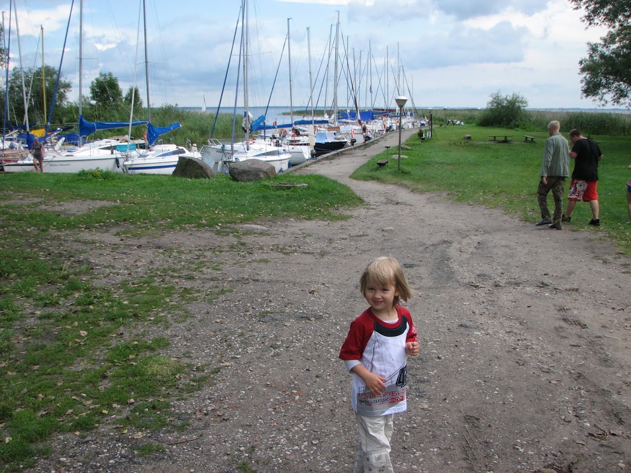 z daleka jest słabo widoczna, gdyż na Jezioro Sztynorckie wływa się przez krótki kanał więc najlepiej wypatrywać Wyspy Ilmy z trzema drzewami i w jej stronę płynąć. Do portu w Sztynorcie dopłynęliśmy w odpowiednim momencie, gdyż wieczorem miał się odbyć koncert dobrze mi znanego zespołu szantowego Ryczące Dwudziestki. Koncert był naprawdę super, było dużo dzieciaków i córeczka Ninka była zadowolona. Następnego dnia popołudniu wypłynęliśmy z portu w kierunku południowym przez Jezioro Dargin i Kisajno. Na nocleg z ogniskiem wybraliśmy Zatokę Zimny Kąt a z samego rano nastepnego obraliśmy kurs na kanały mazurskie. Mogliśmy pozwolić sobie na dłuższe pływanie bo Nika teraz o wiele dłużej wytrzymuje na łajbie. Na południu Mazur tradycyjne odwiedziliśmy Mikołajki i Galindię. Byliśmy także w bardzo urokliwej wiosce Wierzba nad Bełdanami oraz w osadzie Popielno nad Jeziorem Śniardwy.