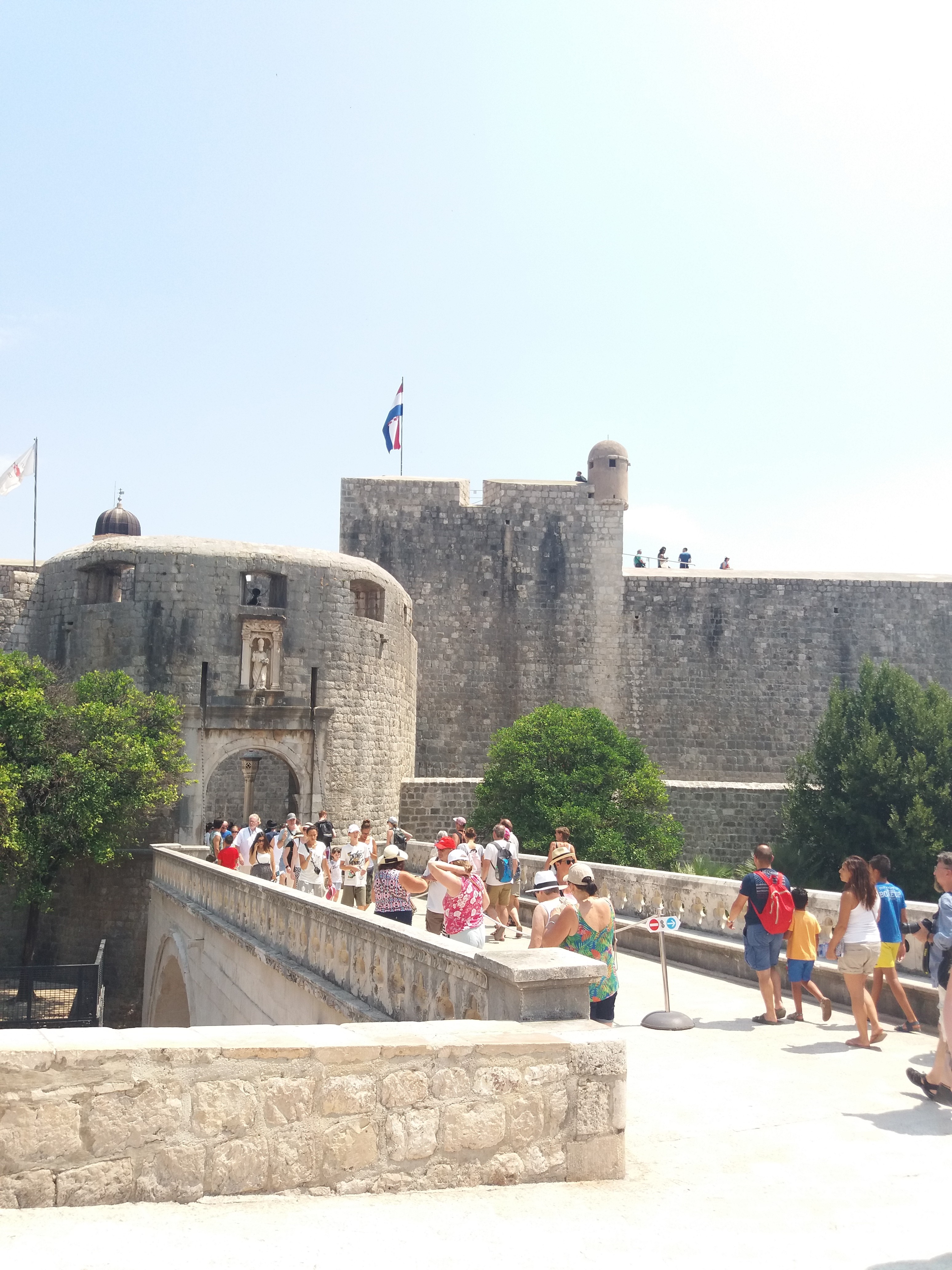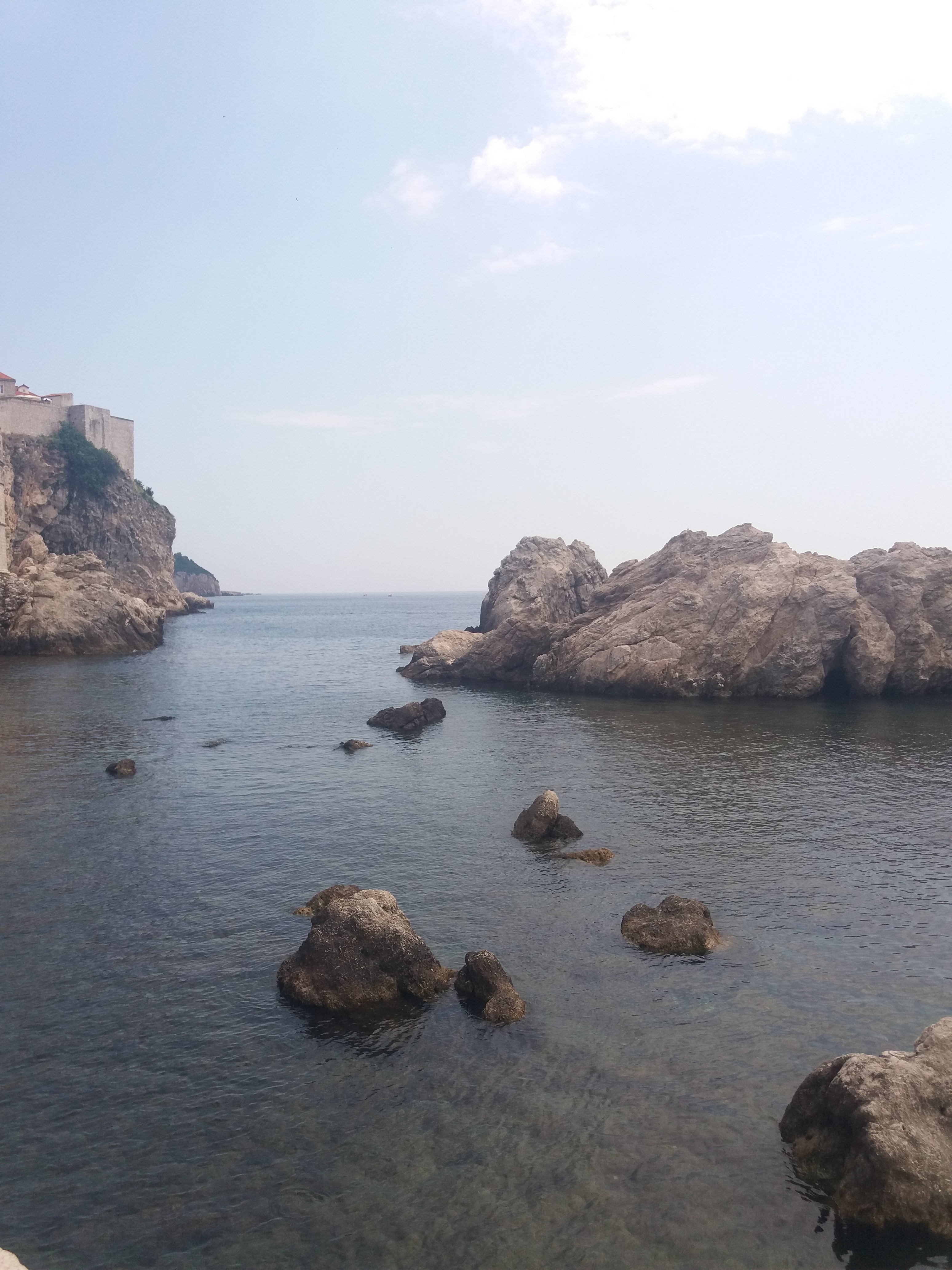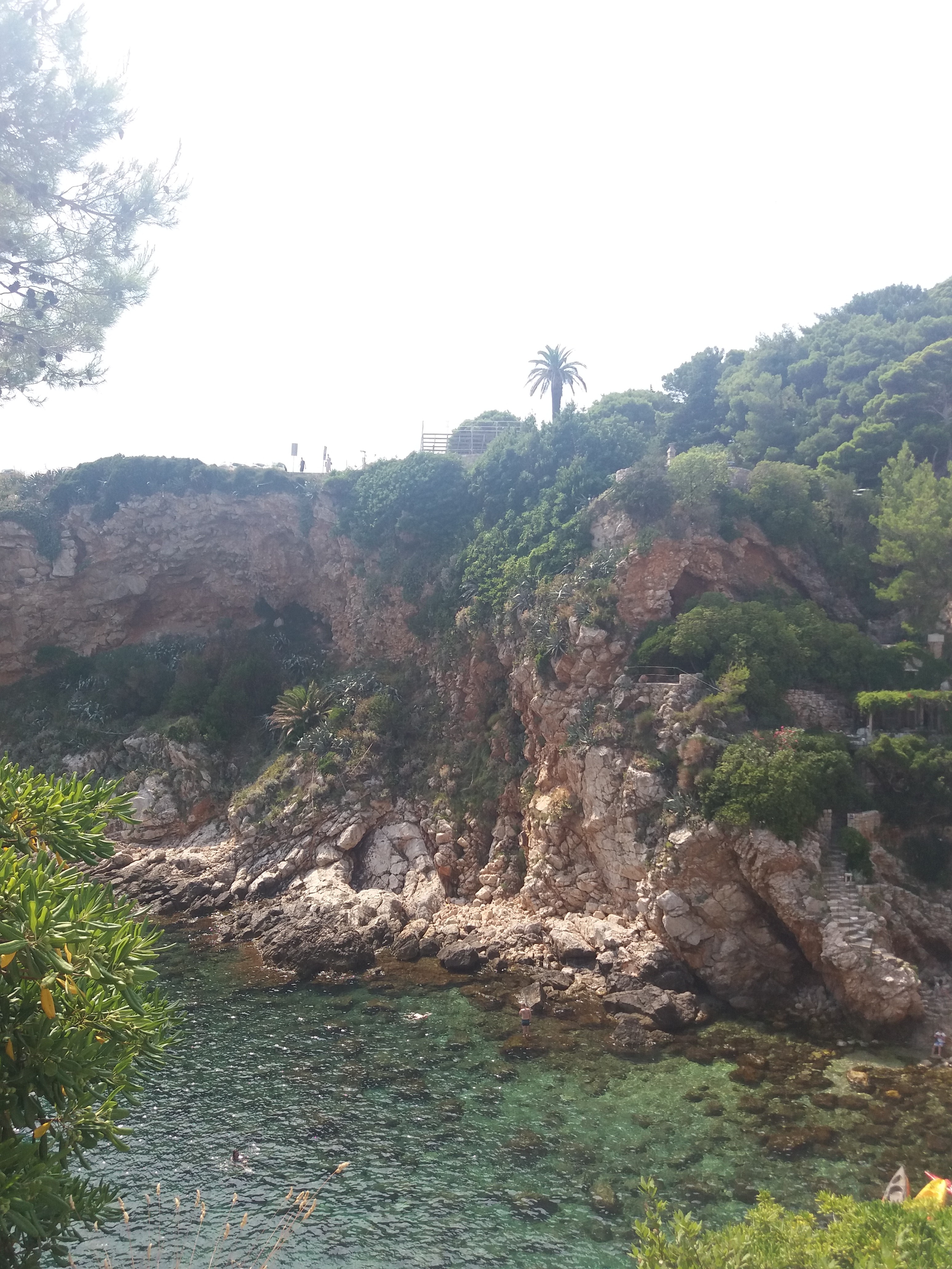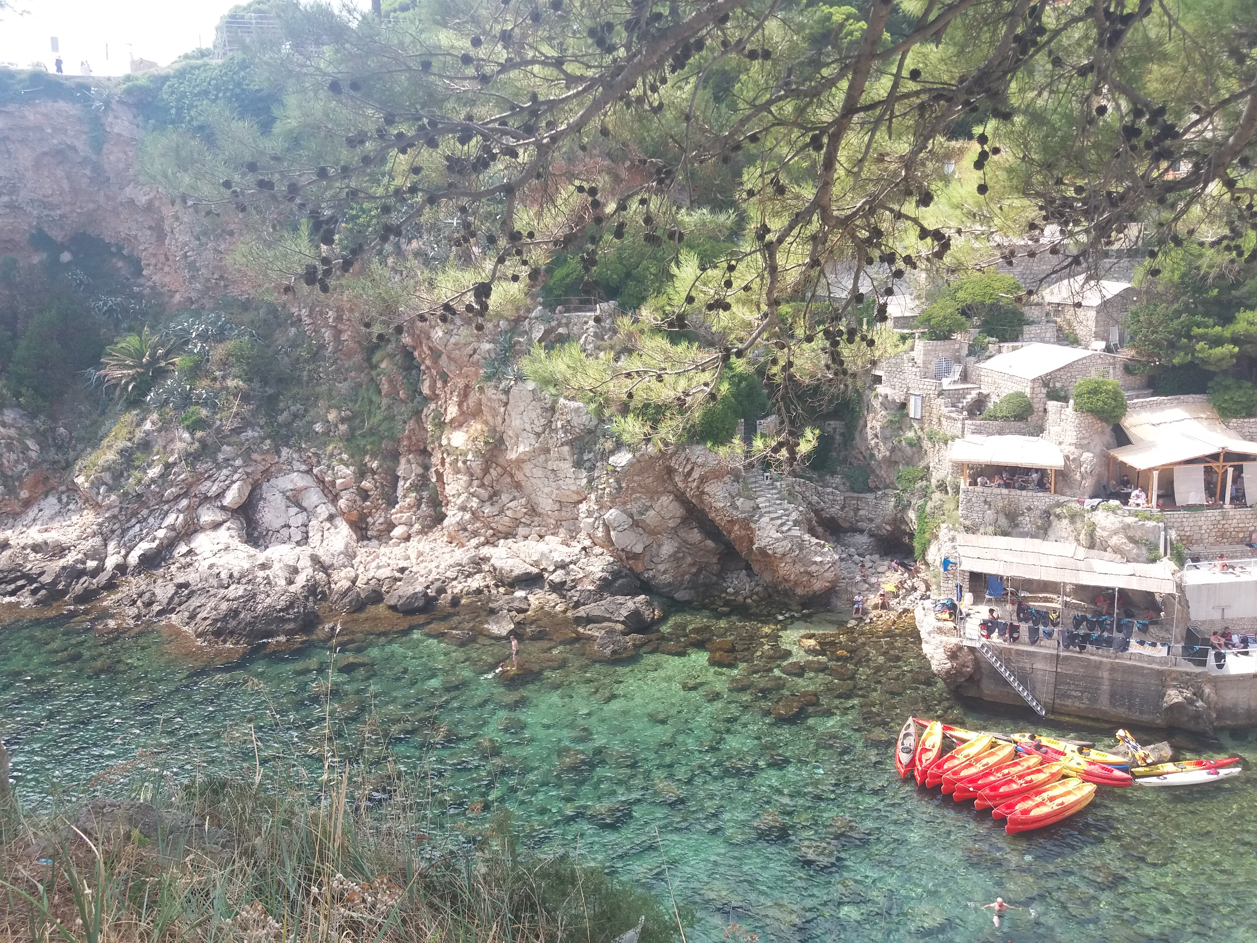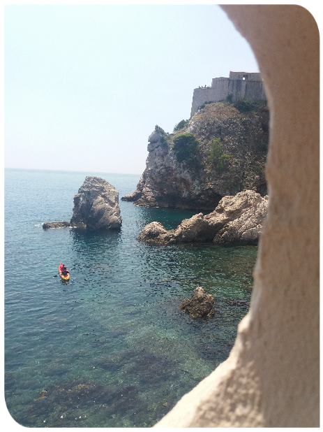 Kolejną wycieczką był wypad do Dubrownika. Trasa Klek-Dubrownik to trochę ponad 70 km i wiedzie przez kawałek Bośni i Hercegowiny. Na trasie panuje duży ruch i są przestoje choćby na granicy z Bośnią i Hercegowiną. Miasto Dubrownik jest naprawdę przepiękne ale zaparkować tam…. My krążąc po mieście w celu znalezienia bezpłatnego miejsca parkingowego w końcu odpuściliśmy i wjechaliśmy na parking podziemny, który trochę kosztuje ale za to przy samej starówce, która jest wpisana na Listę Światowego Dziedzictwa Kulturowego UNESCO. Dubrownik oprócz przepięknych zabytków ma naprawdę piękne plaże. Spacerując wąskimi uliczkami miasta przez przypadek na jedną z nich trafiliśmy (zdjęcie poniżej).