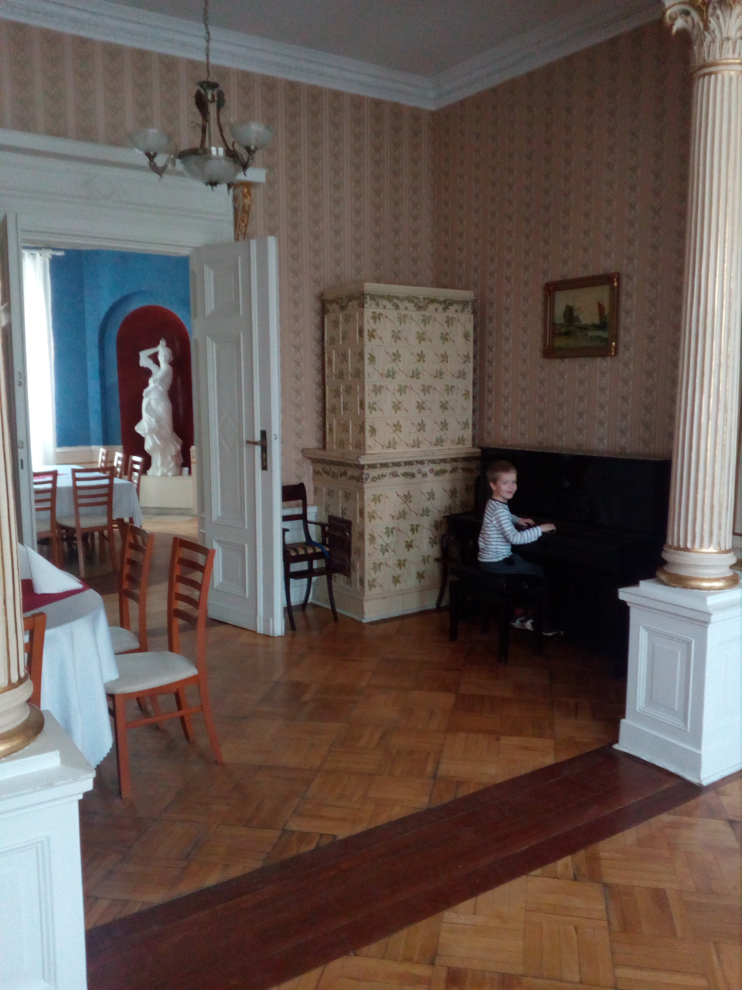 pomiędzy umiescowiony jest staw z drewnianym pomostem i miejscem do odpoczynku. Nasz pokój mieścił się w części hotelowej centrum kongresowo-szkoleniowego do której przynależy pałąc z parkiem. Dzieciaki mogły ganiać po parku, gdyż cały kompleks jest ogrodzony i nie musieliśmy się martwić, że gdzieś się zapędzą w zabawie. W planach oprócz zwiedzania stolicy Wielkopolski chcieliśmy jeszcze odwiedzić Puszczykowo, które leży na skraju Wielkopolskiego Parku Narodowego i w pierwszej kolejności tam pojechaliśmy. W czasach szkolnych uwielbiałem czytać książki Arkadego Fiedlera a jego dom, w którym jest teraz muzeum znajduje się w Puszczykowie. Arkady Fiedler jest autorem książek głównie o tematyce przygodowo-podróżniczej jak choćby moja ulubiona trylogia, której akcja dzieje się w Ameryce Południowej pt. "Wyspa Robinsona", "Orinoko" oraz "Biały Jaguar".