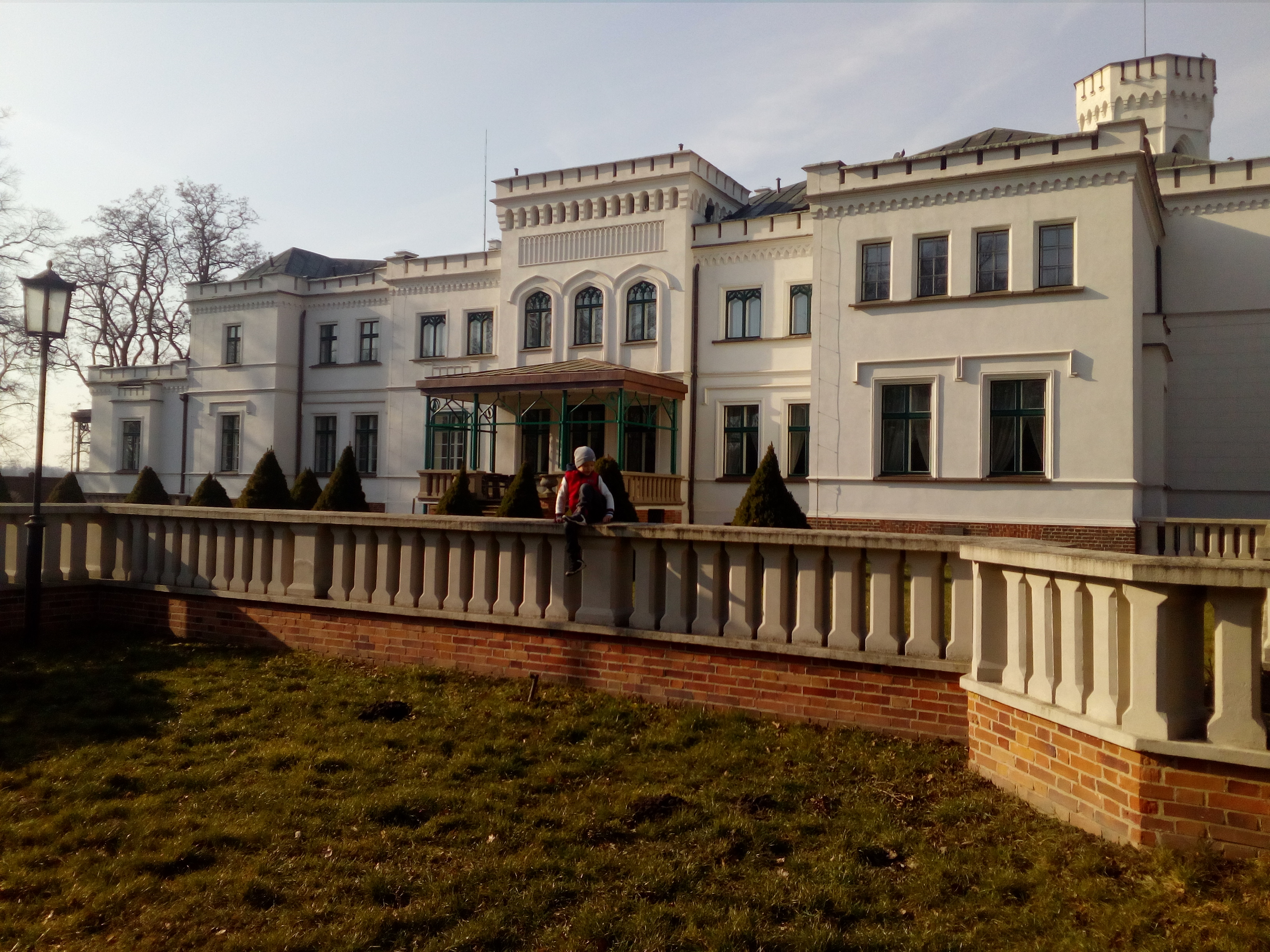Do Wielkopolski wybraliśmy się w związku z odbiorem królików miniaturek rasy mini "Teddy" dla naszych dzieci z hodowli w Poznaniu. Zaplanowaliśmy zwiedzanie Poznania i okolic na sobotę i niedzielę. W niedzielę popołudniu mieliśmy odebrać parkę królików w Poznaniu i do tego czasu mogliśmy zwiedzać. Miejsce na nocleg znaleźliśmy w miejscowości Będlewo poprzez serwis internetowy booking.com. Pojechaliśmy autostradą A4 przez Gliwice do Wrocławia, następnie drogą ekspresową S5 dojechaliśmy prawie do samego Będlewa pod Poznaniem. We wsi Będlewo mieści się XIX-wieczny Pałac, który z początku należał do rodziny Potockich. Pałac w Będlewie z charakterystycznymi wieżami został wybudowany w stylu neogotyckim i ładnie się prezentuje na tle dużego, również XiX-wiecznego parku. W parku przed pałacem znajduje się duża fontanna a w jego głębi,