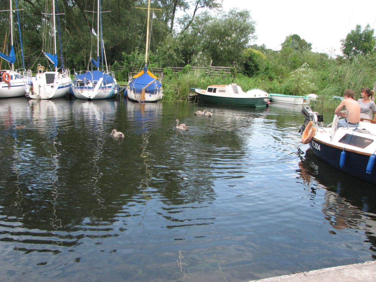 Młode łabędzie w porcie