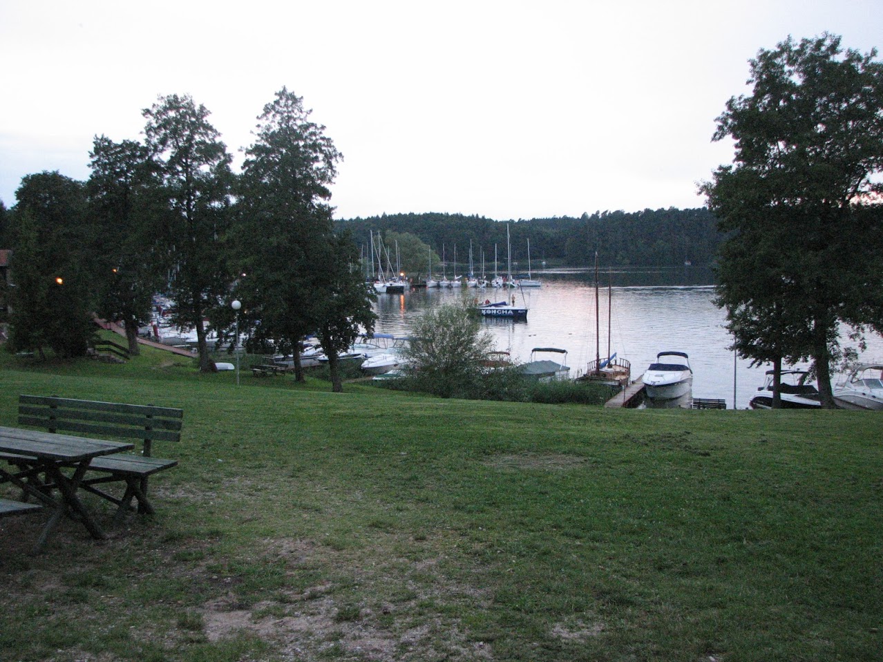 z daleka jest słabo widoczna, gdyż na Jezioro Sztynorckie wływa się przez krótki kanał więc najlepiej wypatrywać Wyspy Ilmy z trzema drzewami i w jej stronę płynąć. Do portu w Sztynorcie dopłynęliśmy w odpowiednim momencie, gdyż wieczorem miał się odbyć koncert dobrze mi znanego zespołu szantowego Ryczące Dwudziestki. Koncert był naprawdę super, było dużo dzieciaków i córeczka Ninka była zadowolona. Następnego dnia popołudniu wypłynęliśmy z portu w kierunku południowym przez Jezioro Dargin i Kisajno. Na nocleg z ogniskiem wybraliśmy Zatokę Zimny Kąt a z samego rano nastepnego obraliśmy kurs na kanały mazurskie. Mogliśmy pozwolić sobie na dłuższe pływanie bo Nika teraz o wiele dłużej wytrzymuje na łajbie. Na południu Mazur tradycyjne odwiedziliśmy Mikołajki i Galindię. Byliśmy także w bardzo urokliwej wiosce Wierzba nad Bełdanami oraz w osadzie Popielno nad Jeziorem Śniardwy.