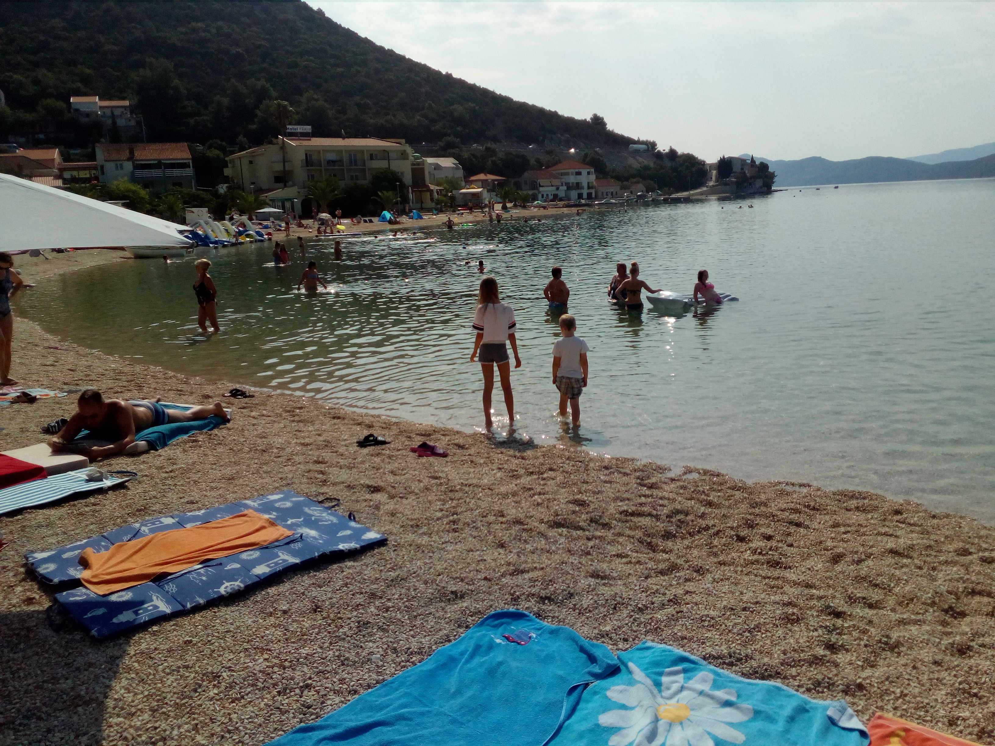 Miejscowość Klek ma bardzo ładną plażę ogrodzoną liną od strony morza, na dnie jest drobny żwirek a nie wielgaśne kamienie. Pod wodą nie ma dołów a głębokość rośnie powoli w miarę odsuwania się od brzegu więc jest dla małych dzieci bezpiecznie. Oczywiście morze czyściutkie. Poza tym woda ma taką wyporność, że nie ma problemu z utrzymaniem się na powierzchni. Minusem jest brak fal, gdyż jest to dobrze osłonięta zatoka od otwartego morza. W trakcie naszego krótkiego 5-dniowego pobytu zrobiliśmy sobie dwie wycieczki. Na pierwszą wycieczkę wybraliśmy się do Bośni i Hercegowiny zobaczyć Wodospady Kravica i słynny ośrodek kultu religijnego, miejsce objawień w Miedjugorie.