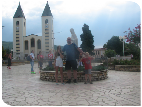 Boskiej – wszędzie pełno straganów z dewocjonaliami. W kraju tym oprócz lokalnych marek akceptowane jest także euro, przelicznik mniej więcej 1 euro = 2 marki. Byliśmy również na Wzgórzu Objawień (nie wszyscy ze względu na upał). Wspinaczka całkiem inna niż u nas w górach – wszędzie pełno wystających kamieni i czerwonej ziemi ale w sandałach da się co udowodnił mój syn :)