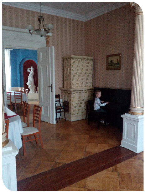 pomiędzy umiescowiony jest staw z drewnianym pomostem i miejscem do odpoczynku. Nasz pokój mieścił się w części hotelowej centrum kongresowo-szkoleniowego do której przynależy pałąc z parkiem. Dzieciaki mogły ganiać po parku, gdyż cały kompleks jest ogrodzony i nie musieliśmy się martwić, że gdzieś się zapędzą w zabawie. W planach oprócz zwiedzania stolicy Wielkopolski chcieliśmy jeszcze odwiedzić Puszczykowo, które leży na skraju Wielkopolskiego Parku Narodowego i w pierwszej kolejności tam pojechaliśmy. W czasach szkolnych uwielbiałem czytać książki Arkadego Fiedlera a jego dom, w którym jest teraz muzeum znajduje się w Puszczykowie. Arkady Fiedler jest autorem książek głównie o tematyce przygodowo-podróżniczej jak choćby moja ulubiona trylogia, której akcja dzieje się w Ameryce Południowej pt. "Wyspa Robinsona", "Orinoko" oraz "Biały Jaguar".