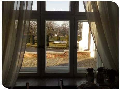 Będlewo - Widok z pałacowego okna na fontannę
